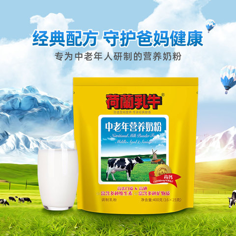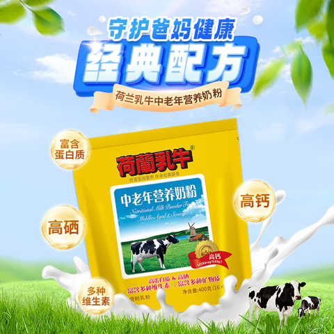荷兰乳牛中老年奶粉高钙营养成年老人富硒奶粉400g*2袋旗舰店官网