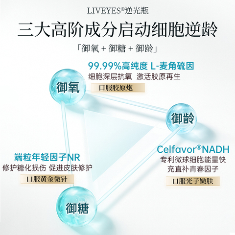 【店铺新客立减38元,叠满200减20元消费券,淘金币可抵15.96元,88vip到手275.33元】LiveYes逆光小棕瓶NADH麦角硫因,超赞~