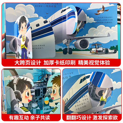 儿童职业启蒙翻翻书撕不烂机关书绘本故事书我是小小飞行员小老师