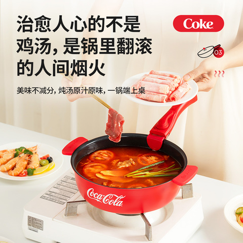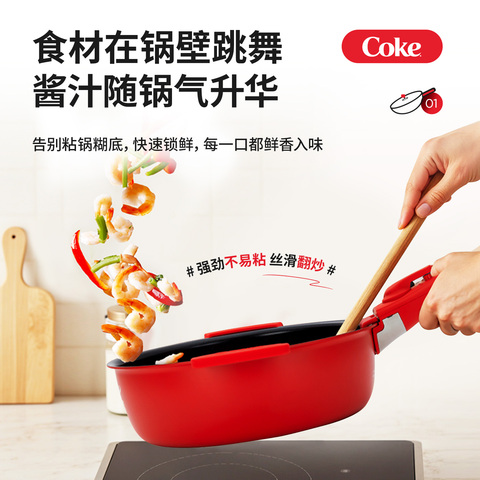 可口可乐手柄可拆卸平底不粘炒锅