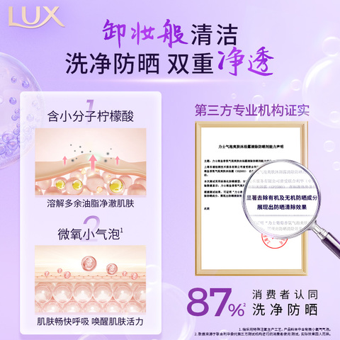 LUX力士葡萄气泡沐浴露,清爽香氛,持久留香!官方旗舰店正品保障,滋润不紧绷,洗后肌肤柔滑细腻。日常使用性价比高,让沐浴成为享受!