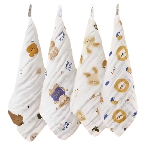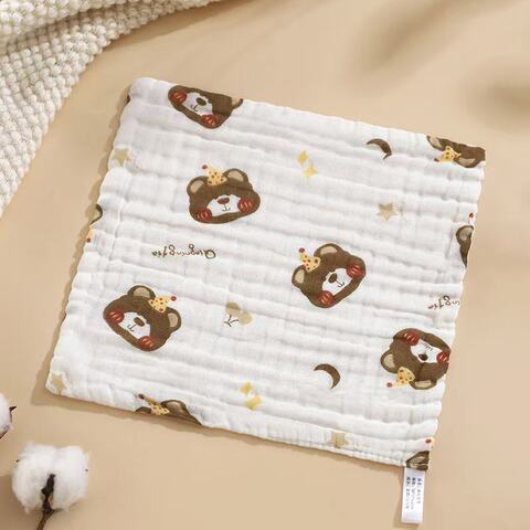 宝宝口水巾纯棉纱布婴儿方巾柔软卡通儿童洗脸巾新生儿小方巾童巾