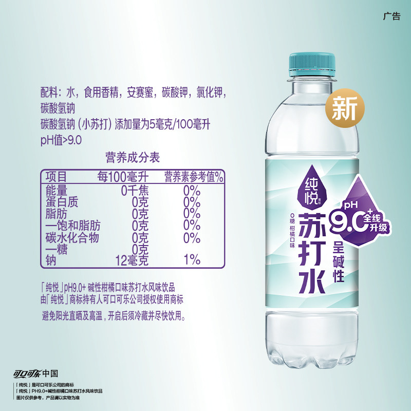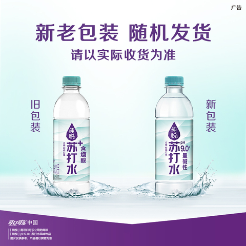 可口可乐 纯悦苏打水含烟酸柑橘味整箱装0糖水 两种包装随机发货