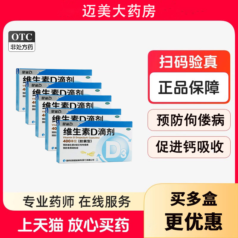【星鲨D】维生素D滴剂400IU*24粒/盒佝偻病骨质疏松补钙增高儿童补钙