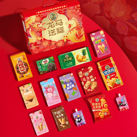 徐福记龙马送福2131g礼盒,年货送礼!精选沙琪玛、坚果等多款休闲小吃,口感香脆美味,礼盒包装大气高端,适合春节送礼或家庭分享,品质保障,吃出幸福年味!