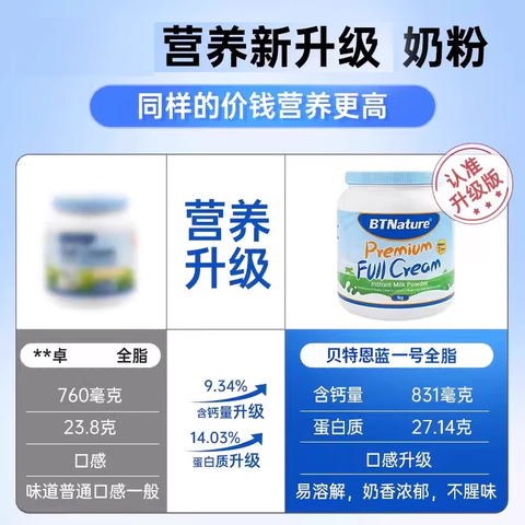 贝特恩全脂脱脂高钙奶粉蓝一号