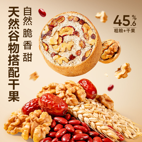 良品铺子坚果车轮面包全麦吐司早餐糕点零食孕妇粗粮。