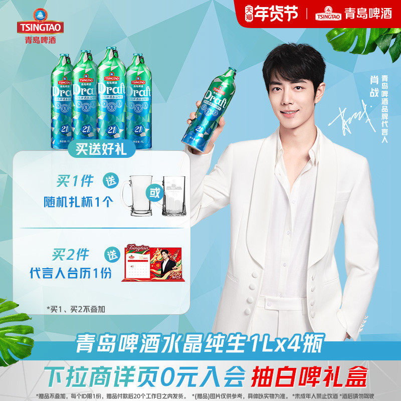 【下单送浮雕扎杯,拍2送肖战台历】水晶纯生鲜活21天,11度黄金配比,口感清爽麦香醇厚~4桶豪装聚会无忧,冰镇更带感!烧烤趴、看球赛、家庭聚,举杯畅享透心凉!囤货趁现在,一口入魂爽翻天!