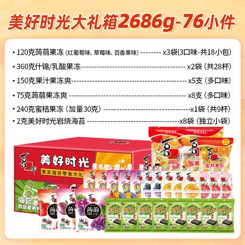 喜之郎美好时光零食大礼箱2.686kg,果冻海苔儿童小吃,节日送礼优选!限囤货正当时!