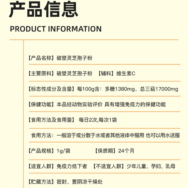 增强免疫,小小一包,大大关怀!破壁率大于等于99%,粉质细腻无颗粒感,入水即化好吸收!