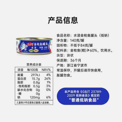 水浸不额外加盐低钠金枪鱼罐头