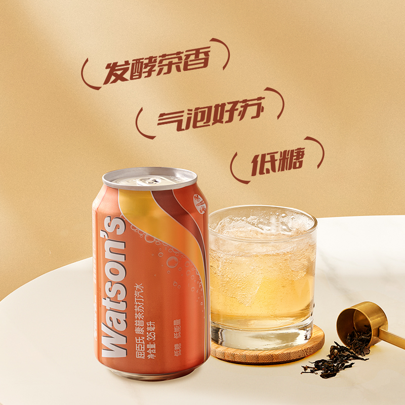 屈臣氏康普茶苏打水低糖碳酸饮料