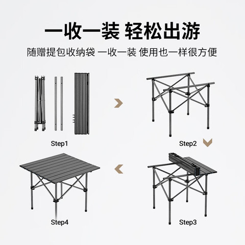 【下单立减50元】超轻便携铝卷桌,加粗支架,四平八稳,稳固承重,履带结构轻松展开组装收纳,防水表面易清理