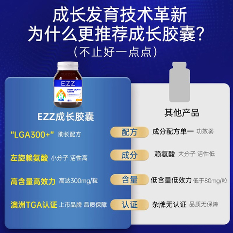 EZZ澳洲进口赖氨酸成长丸钙镁锌成长科技儿童青少年学生120粒/瓶