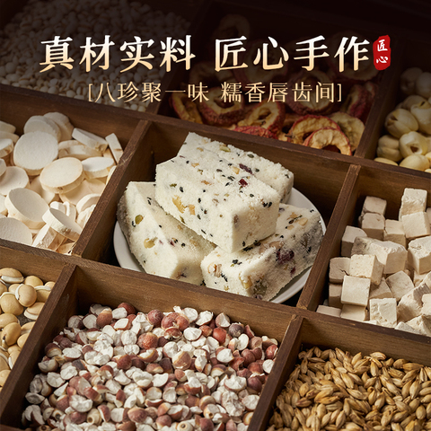 #食养代餐♥新鲜现做#【商品券满5.01减5,满2件9.5折】【到手价:6.80=19.80(优惠前)-5.00(单品直降)-8.00(商品券)】坚果茯苓八珍糕1盒(酥软、香脆、层次丰富)---味利友非遗坚果茯苓八珍糕健康美味点心,严选八珍,六种坚果,坚果满满,软糯可口~