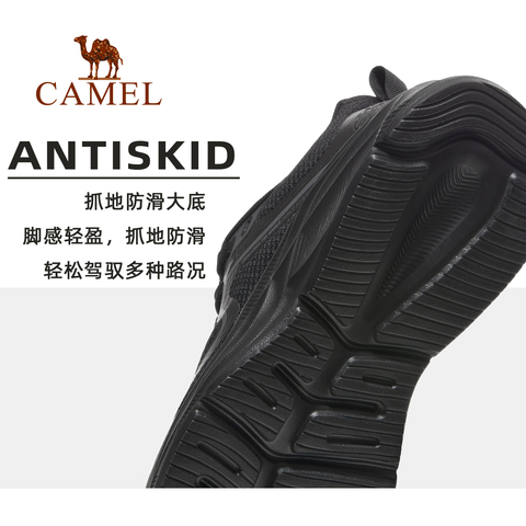 骆驼疾风运动鞋,男春夏网面透气男鞋防滑跑步鞋休闲鞋黑色爸爸鞋子
