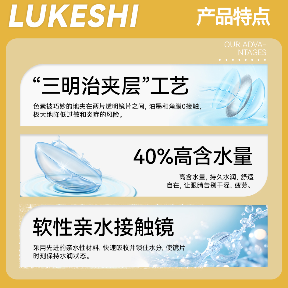 【单品直降及店铺优惠58+淘金币2.92】 【36.88到手2副】lukeshi原生主义早八党半年抛!气质百搭+大小直径,近视党适配,可试戴1片,不舒服、磨眼、划片全额退款!送120ml护理液+2个伴侣盒!【赠运费险】