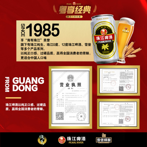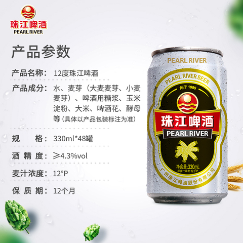 珠江啤酒12度经典老珠江330mL*24罐*2整箱装批发罐装官方旗舰店,超赞~