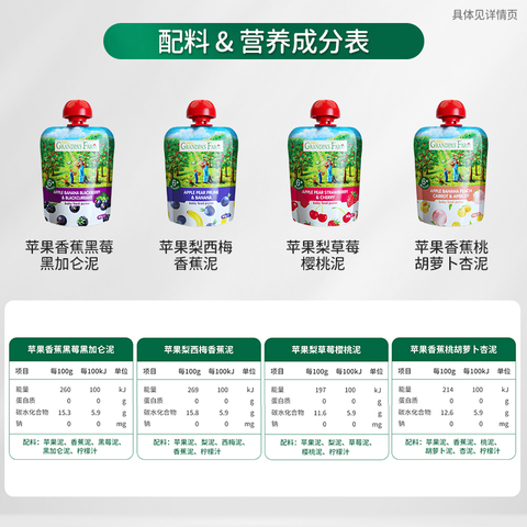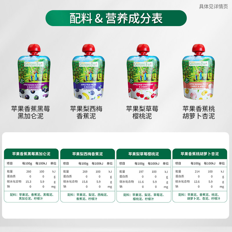 爷爷的农场法国进口婴儿辅食果泥90g*5袋,吃一袋满足孩子一天的水果摄入量,不额外添加一滴水,满满真材实料!