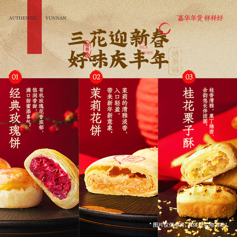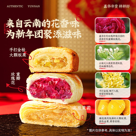 嘉华鲜花饼礼盒云南特产玫瑰花饼传统糕点心零食春节年货礼盒送礼