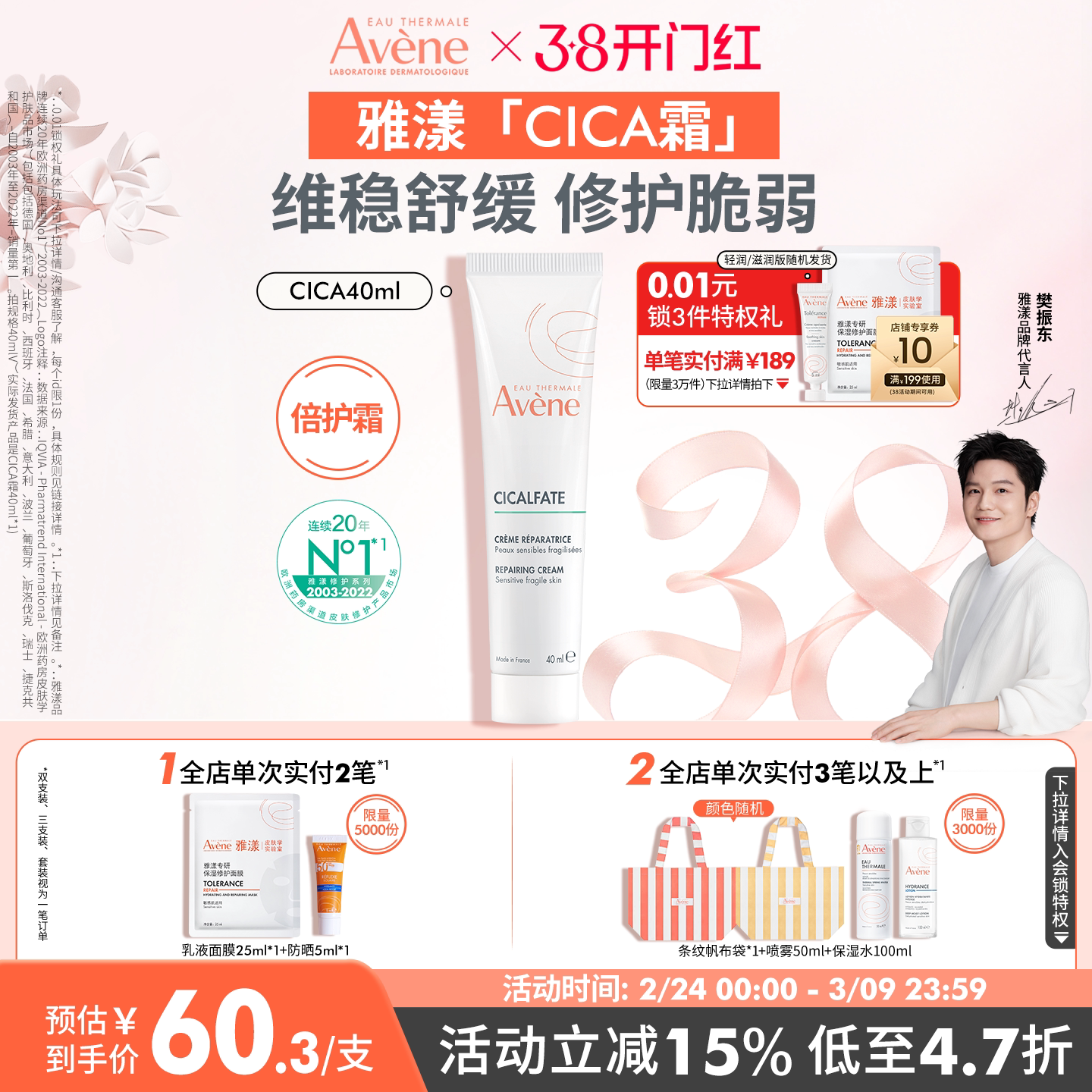 【樊振东同款】雅漾Cica霜倍护霜舒缓褪红救急敏肌修护面霜大白霜 【售价】:¥60.00 【券后】:¥47.00 【优惠券】:¥13 推荐理由:一支多用,救急多种问题肌肤,改善修护环境,加速修护问题肌肤,舒缓肌肤不适感,温和0添加,绵厚质地,自然亲和,专研排放提高修护速度,净化,修护,舒缓多效合一。 👉复制这条信息打开【手机淘宝APP】即可领券购买:/