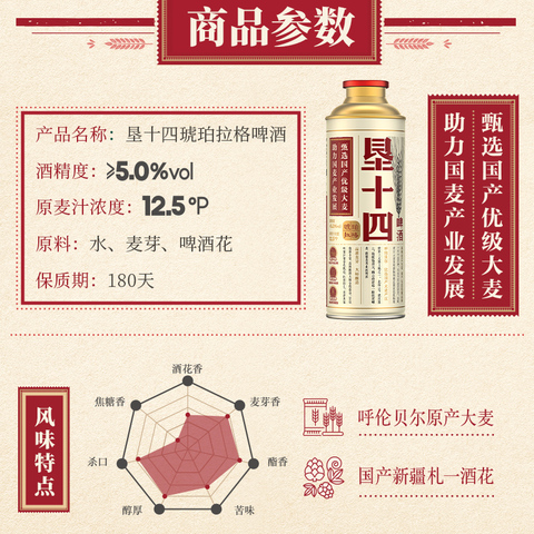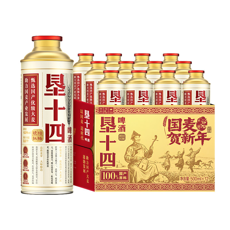 雪花啤酒垦十四琥珀拉格500ml*12罐马口铁装 大师酿造 春节送礼