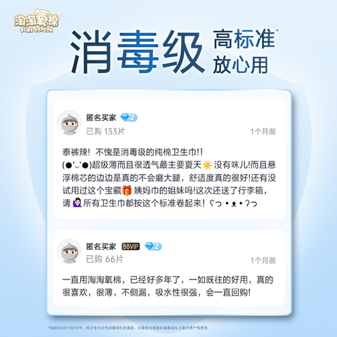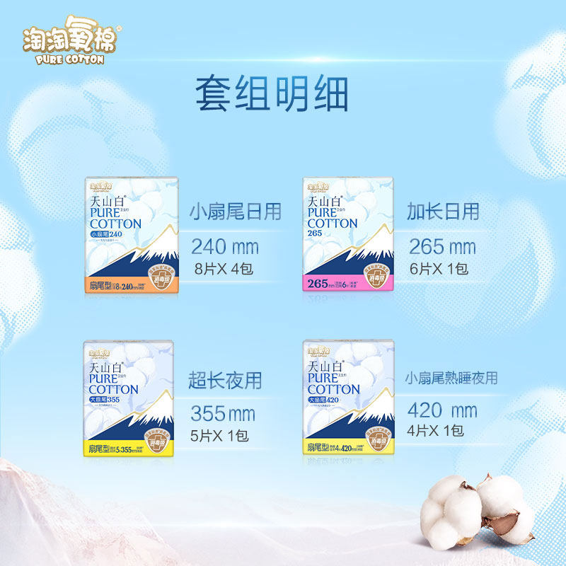 【杨紫同款】淘淘氧棉天山白消毒级纯棉卫生巾日夜组合透气