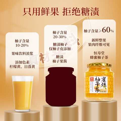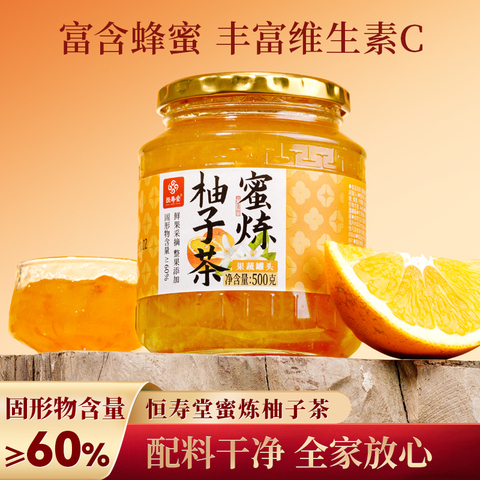 冬季喝水新搭子!恒寿堂蜂蜜柚子茶,45%果肉添加丰富,酸甜可口,柚香浓郁,泡水即饮,替代奶茶更健康!