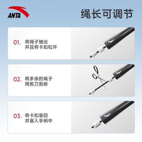 安踏中考专用跳绳,不打结设计,专业竞速款,适合中小学生及初中生健身减肥,轻便耐用,提升跳绳体验!