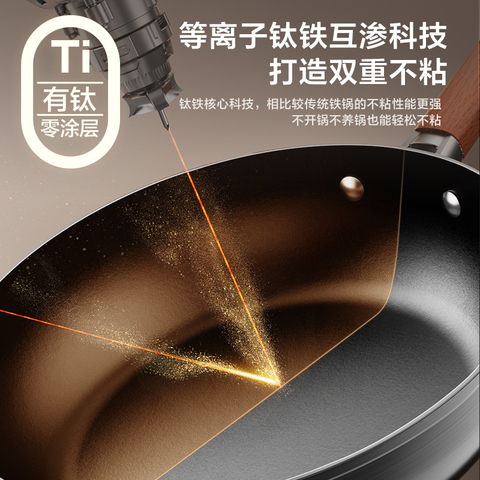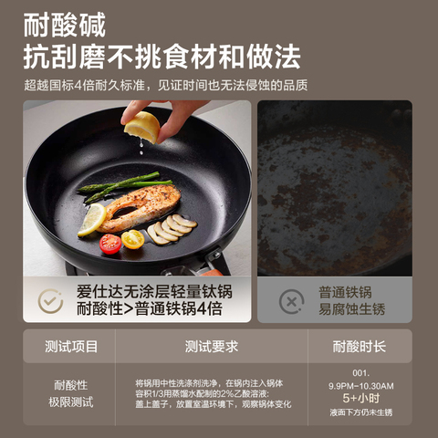 88VIP95折【官方立减70可叠加金币天降红包好ping返xian20】【新品】爱仕达有钛无涂层煎锅加高加厚铁锅煎蛋牛排不粘平底锅。