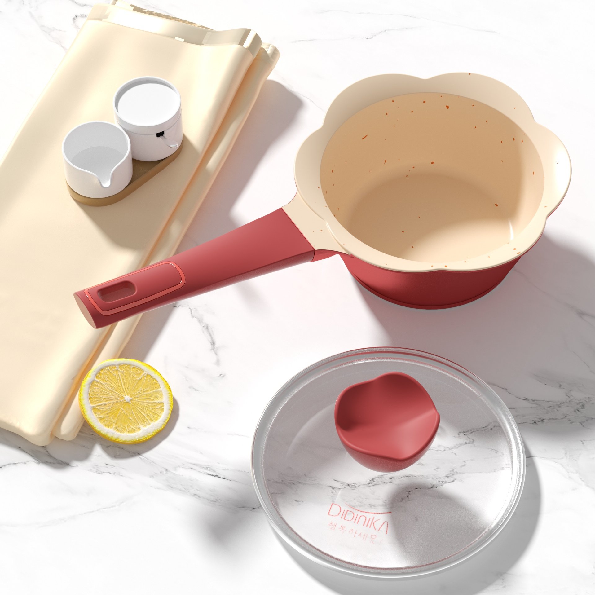 迪迪尼卡花瓣套装辅食锅不粘锅煎煮一体小奶锅2