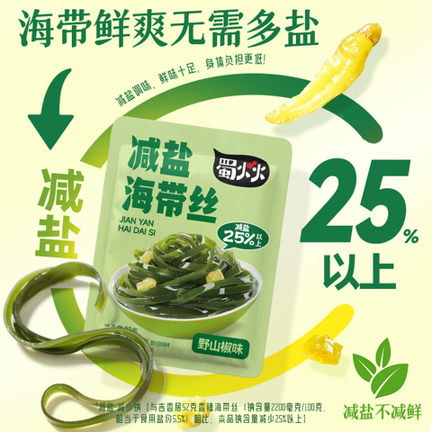 吉香居海带丝野山椒双味来袭!13袋装,野山椒款酸辣开胃,减盐款轻享健康,脆嫩爽口,拌饭配粥超绝!独立小包,随时随地解馋,双口味满足全家,速抢!