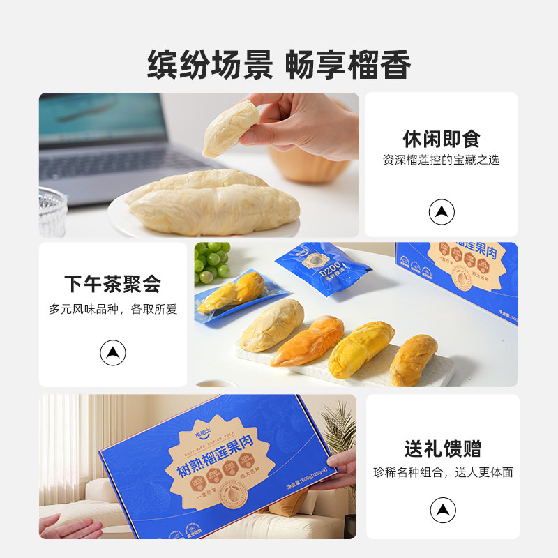 市舶士猫山王苏丹王榴莲果肉拼盘冷冻马来西亚自然树熟3D锁鲜500g