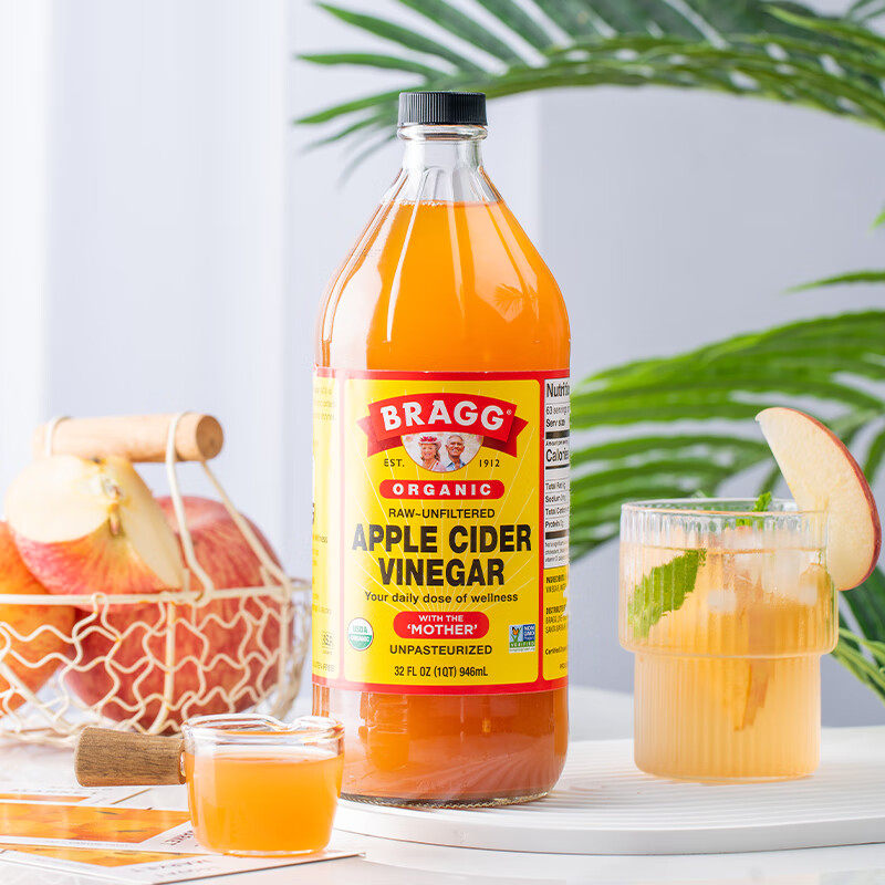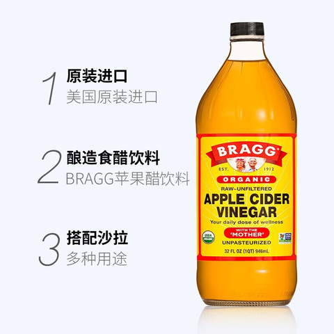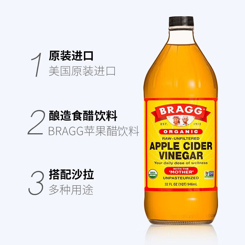 【年货精选周】【946ml*2瓶】【满200减25,官方立减12%省36元,88VIP95折立减7.5元,淘金币可抵3.00元,每件直降114元】BRAGG美国进口浓缩(苹果醋946ml)*2,自然发酵,健身搭档,原装进口,酿造食醋材料,食用沙拉~