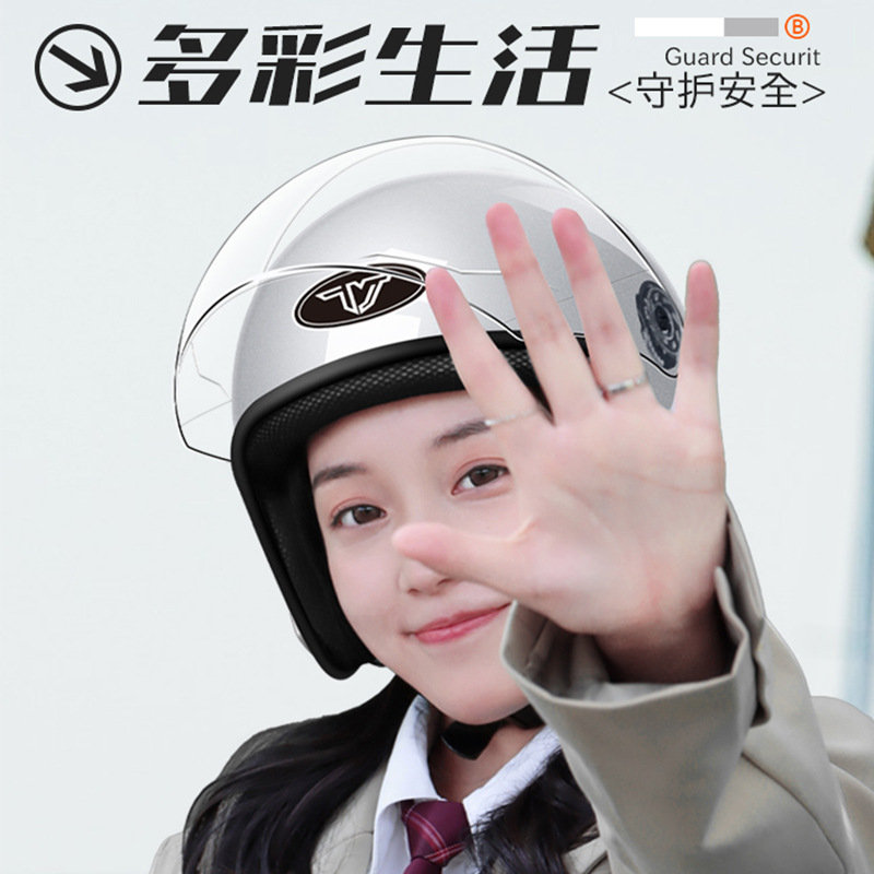 3C认证电动摩托车头盔男女士半盔夏四季通用电瓶车安全帽秋冬保暖