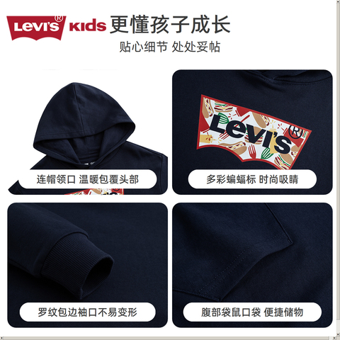【券+金币+红包106】购物金到手更低!Levis加绒儿童连帽卫衣2025冬季新款上线!男童女童都能穿,圆领长袖经典百搭。内里加绒柔软亲肤,保暖不臃肿,贴身穿超舒服。简约版型适配各种下装,上学、居家、户外都能搭,冬日儿童穿搭必备款!