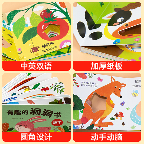 中英双语【18册】有趣的洞洞书认知洞洞书精装洞洞书认知洞洞书婴儿早教书籍宝宝认知绘本适合幼儿看的书儿童书本幼儿启蒙图书