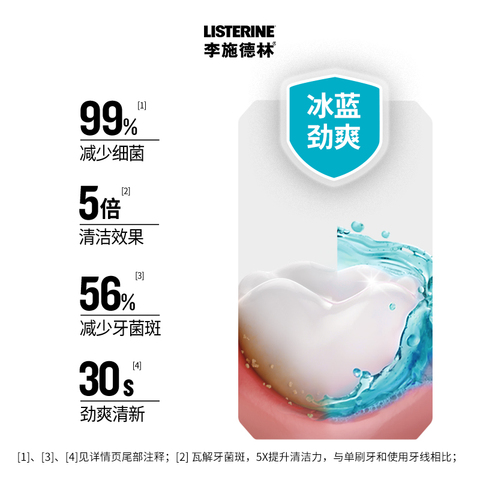 李施德林冰蓝漱口水1L*2瓶装,含酒精有效减少口臭和细菌,清新口气持久。限时淘宝秒杀,部分用户可领10元优惠,快来抢购!