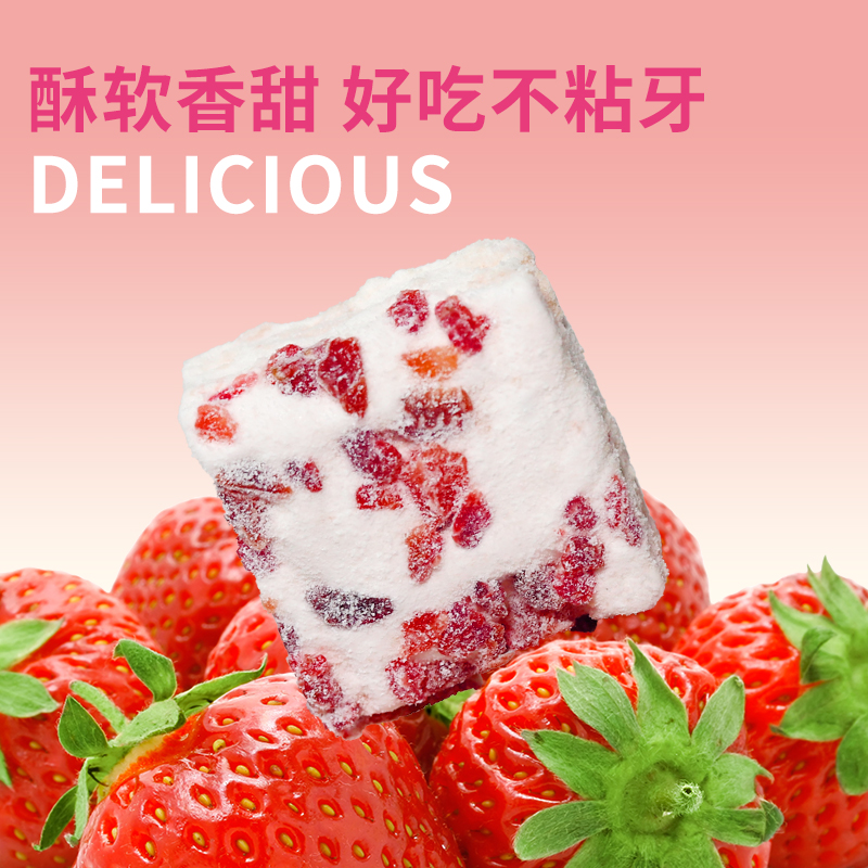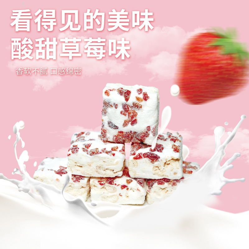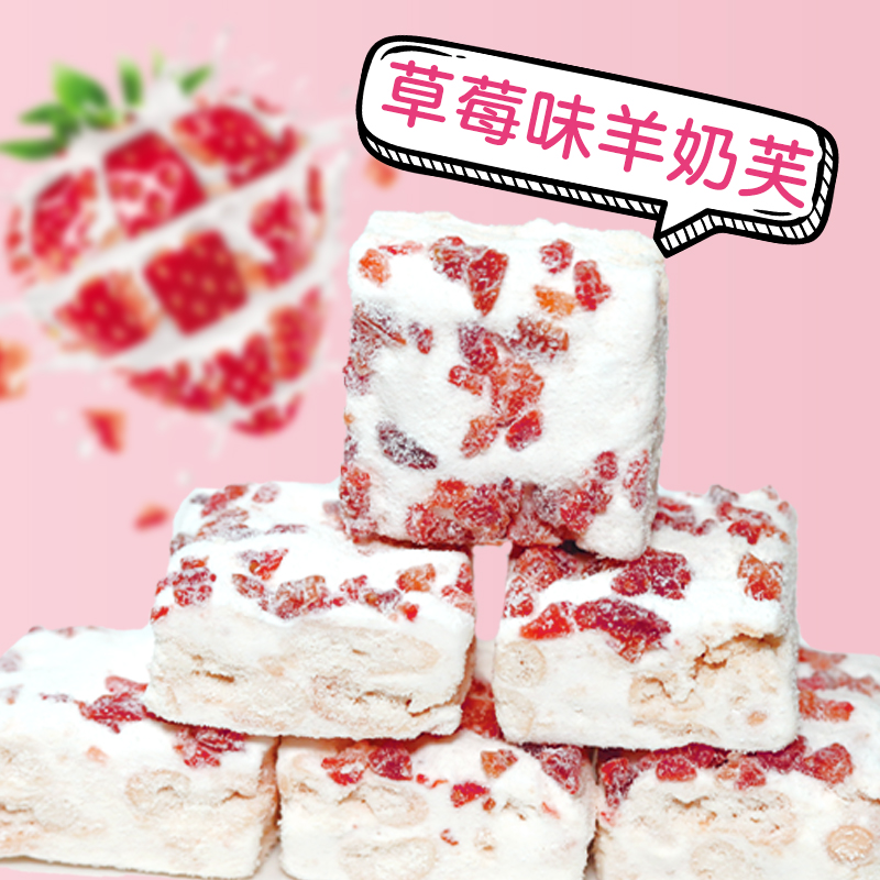 【好吃的网红产品来啦】草莓羊奶芙爆款雪花酥!独立小包装,拉丝绵软,奶香浓郁,解馋零食新选择,一口拉丝幸福感爆棚!