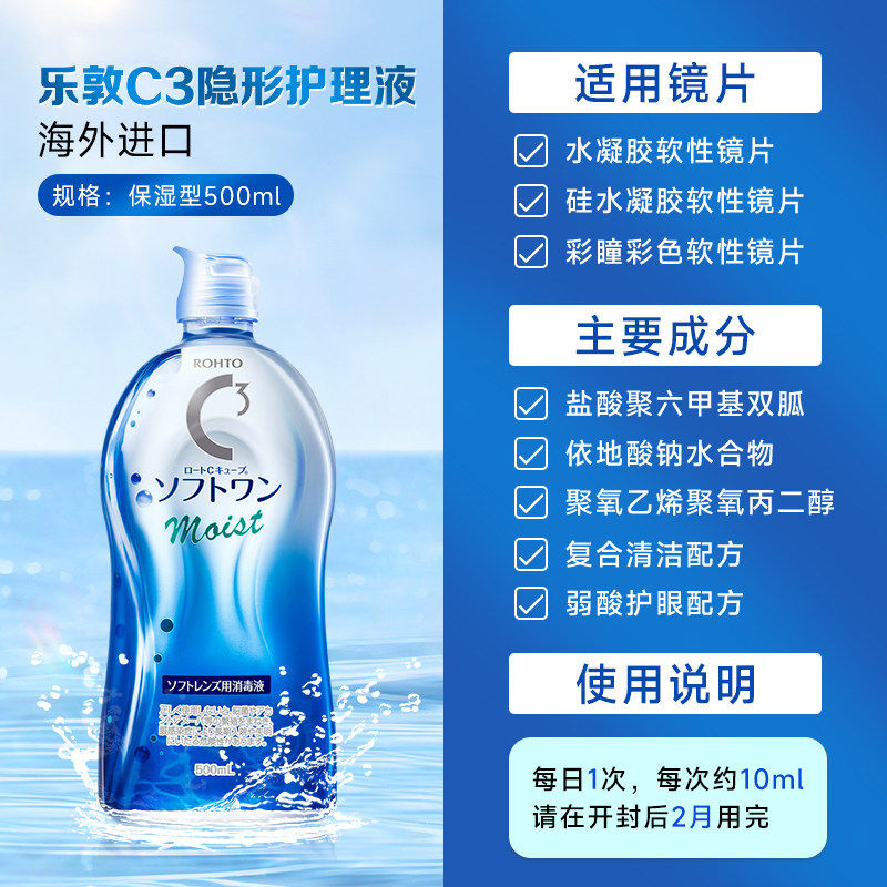 【爆款】日本乐敦清C3美瞳隐形眼镜护理液全能滋润保湿抑菌去蛋白