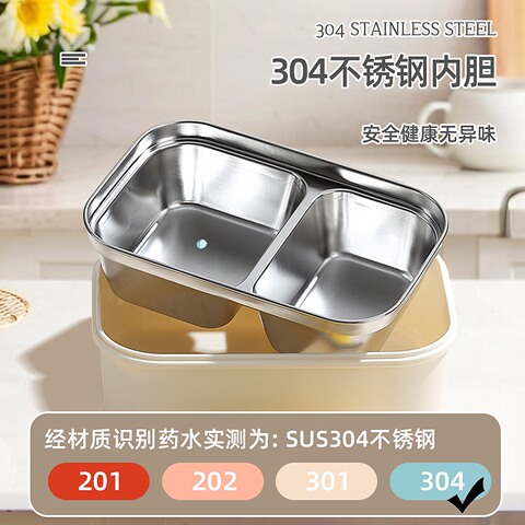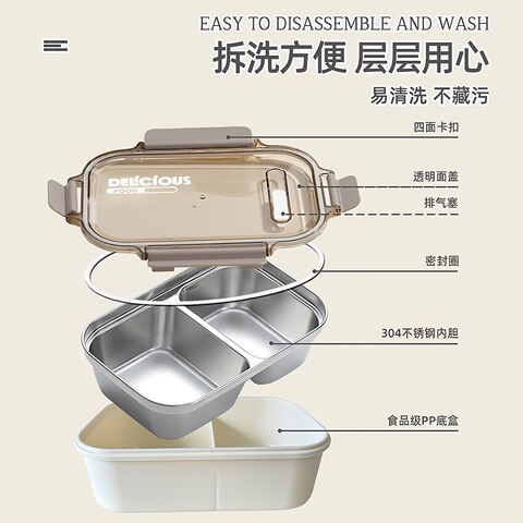 梵施家品饭盒,上班族学生用儿童分格便当餐盒微波炉加热304不锈钢