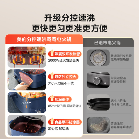 美的分控速沸电火锅鸳鸯,家用多功能一体式电炒锅电锅电煮锅不粘锅