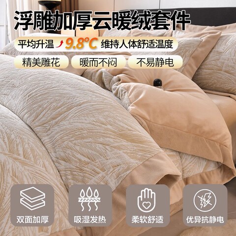 玉芙妮A类母婴级高克重恒温保暖雕花牛奶绒云暖绒 透气保暖四件套