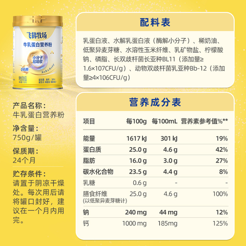 飞鹤牛乳蛋白营养粉750g