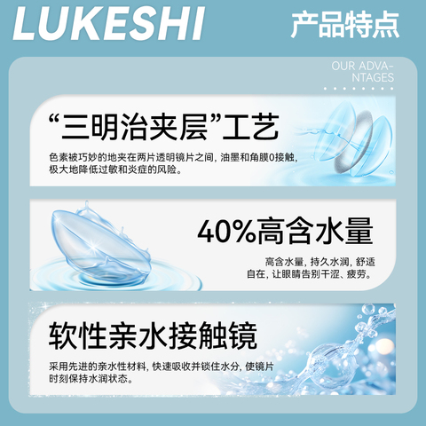 【单品直降及店铺优惠58+淘金币2.92】 【36.88到手2副】lukeshi纯欲陷阱透亮蓝半年抛!气质百搭+大小直径,近视党适配,可试戴1片,不舒服、磨眼、划片全额退款!送120ml护理液+2个伴侣盒!【赠运费险】