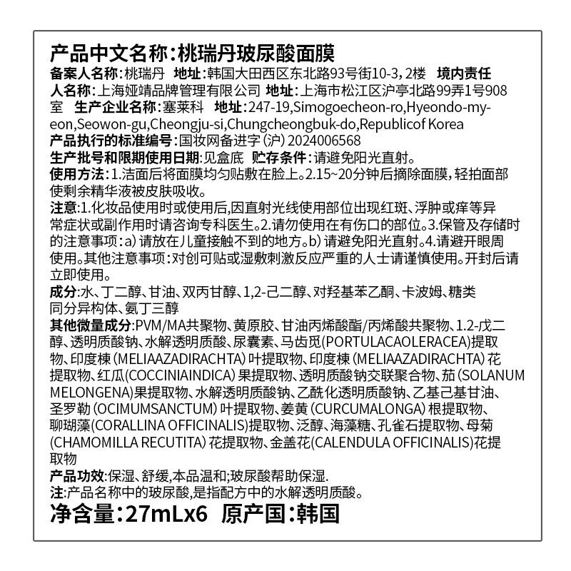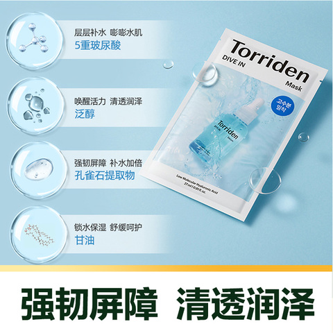 臻选torriden桃瑞丹面膜保湿舒缓贴片精华液玻尿酸补水护肤品韩国