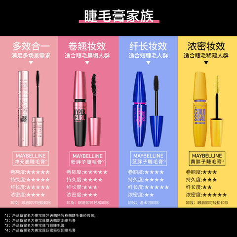 美宝莲睫毛膏家族纤长卷翘浓密