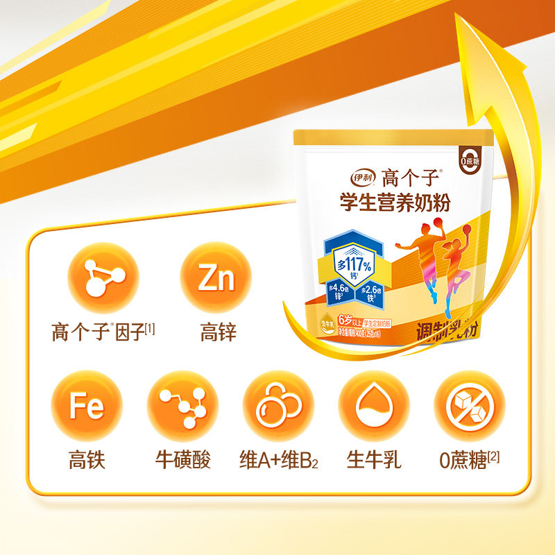 伊利高个子大学生青少年儿童成长营养牛奶粉,400g*2袋