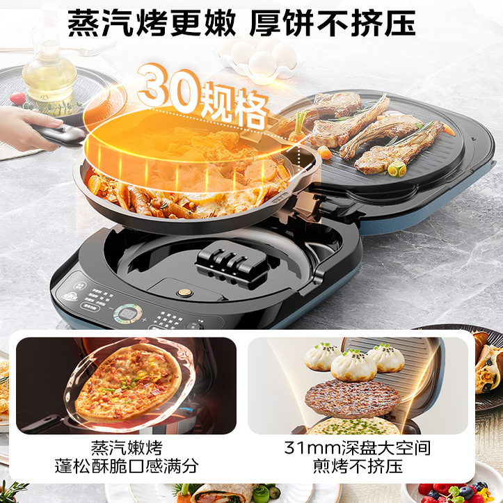 美的电饼铛,家用双面加热可拆洗加深加大钛陶煎烙饼机新款官方正品