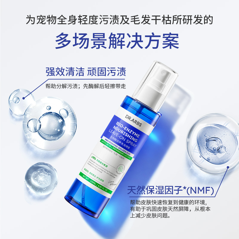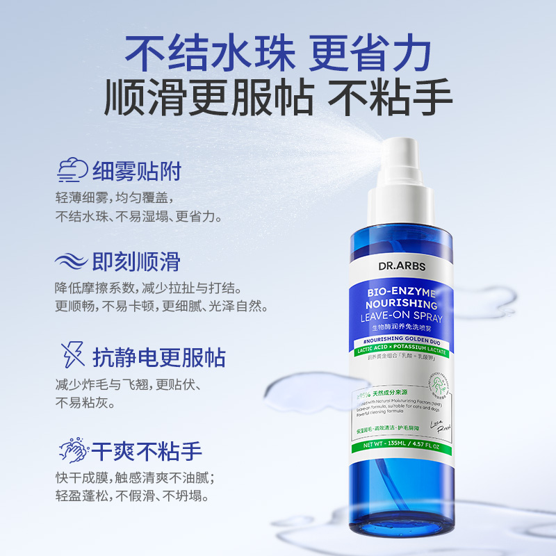 ARBS阿巴斯宠物狗狗猫咪免洗清洁喷雾顺毛开结生物酶除臭沐浴露